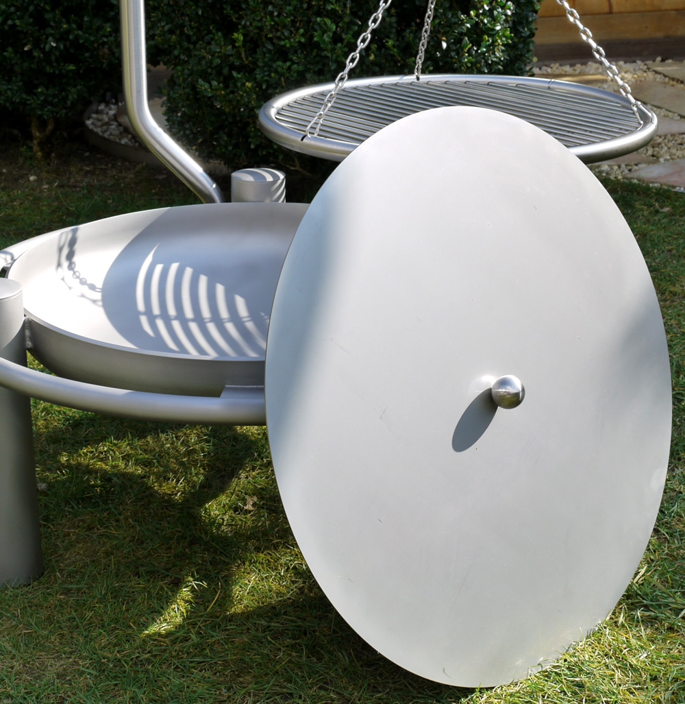 Der Deckel aus Edelstahl schützt die Feuerschale Ø 70cm vor schlechter Witterung und nicht einschätzbarem Funkenflug nach dem Einfeuern. Für ein sicheres Grillieren!