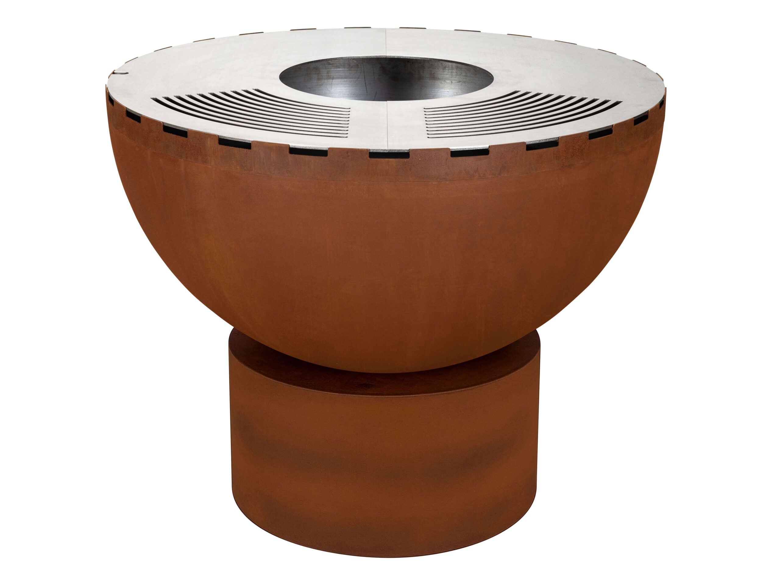 Die Feuerkugel Primula 100cm gerostet, ist aus massivem Kesselblech gefertigt und schafft mit der grossen Edelstahl-Grillfläche viel Platz zum grillieren ob Fleisch, Fisch, Gemüse oder sogar Eier.