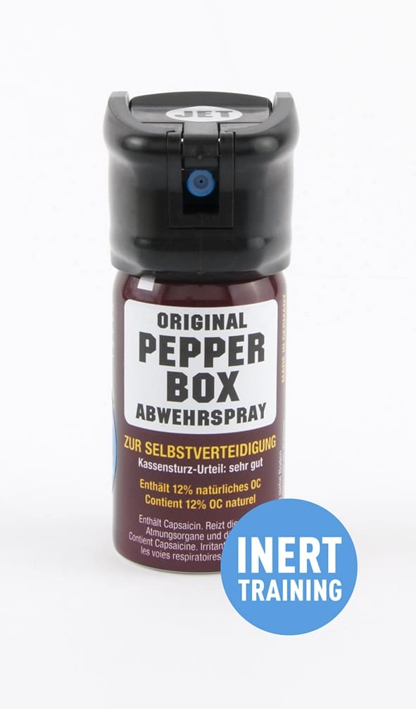 Pfefferspray Pepper-Box klein mit Flip Top für Training mit Flüssigstrahl