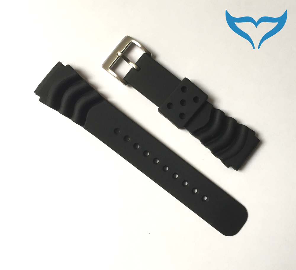 Armband Uhr Gummi schwarz 22 mm Federsteg Schließe matt Band Kautschuk Poseidon